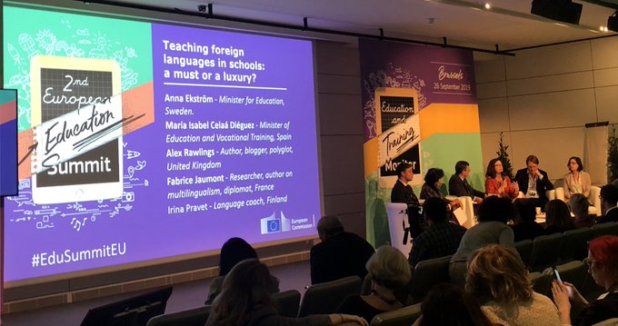 My panel, “Teaching foreign languages in schools a must or a luxury?” included Anna Ekström, Sweden‘s Minister for Education, María Isabel Celaá Diéguez, Spain’s Minister of Education and Vocational Training, Alex Rawlings, an author, blogger and polyglot from the United Kingdom, and Irina Pravet, a language coach from Finland. While the Ministers focused on presenting their countries’ accomplishments in language education and teacher development, the other panelists and myself discussed how learning languages is not only about discovering the wider world and building a more cohesive society, it is a tremendous source of joy.