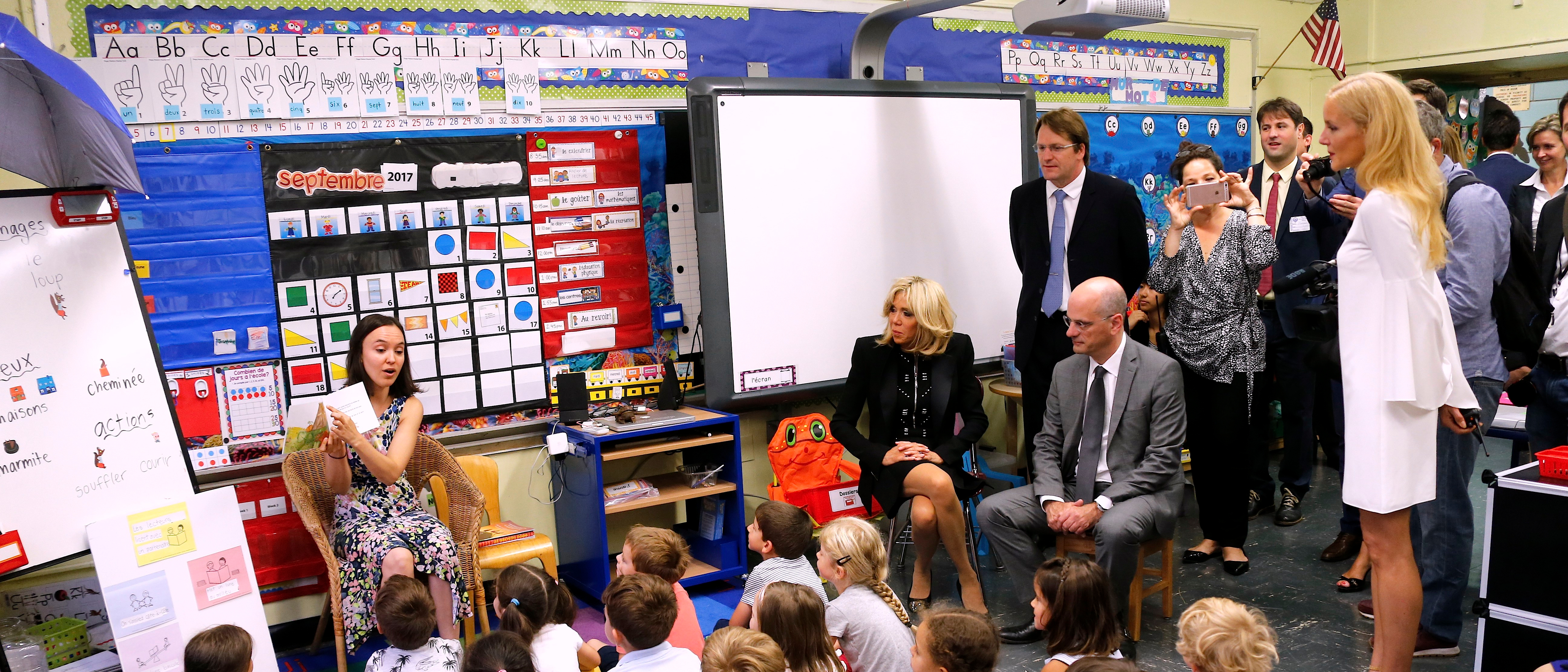 First Lady of France Brigitte Macron is visiting the Minister of National Education Jean Michel Blanquer the Public School 84 in New York, NY on September 20, 2017.